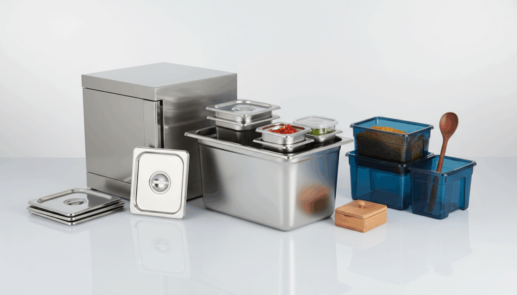 Backbar & opbevaring dækker løsninger til både bar og køkken: holdbare gastronorm-beholdere, kantiner og låg, samt robuste rustfrit-stålsskabe og bain-marie-systemer til varm opretholdelse. I kategorien finder du GN-beholdere i forskellige dybder (1/2 GN og 1/4 GN) og kantiner, der gør forberedelse og opbevaring af ingredienser mere effektiv. Dybderne varierer typisk mellem 150 og 200 mm. Derudover findes opvarmede overborde og praktiske underborde, som optimerer arbejdsflow og plads. Vælg materialer som rustfrit stål (AISI 304) eller polycarbonat, og tjek kompatibilitet og rengøringsvenlighed. Se produkter hos Maxigastro.dk og Nordicbar – alt til baren.