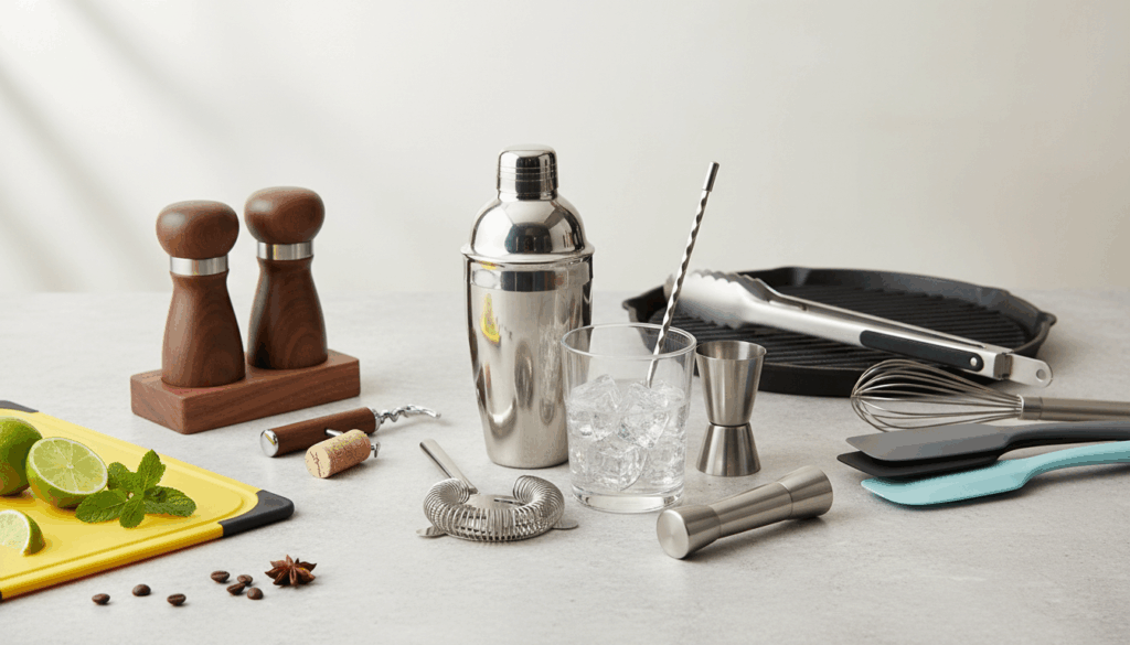 Barudstyr & tilbehør dækker alt fra køkkenredskaber til stilfuldt og funktionelt barudstyr. Kategorien omfatter redskaber til madlavning, bagning og servering: gryder, pander, grilltilbehør, bageudstyr, opbevaringsløsninger og bordtilbehør samt barredskaber som shakere, strainers og corkscrews.