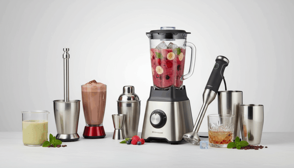 Typiske funktioner inkluderer kraftfuld motor, robuste blade af rustfrit stål, flere hastigheder, puls-funktion og aftagelige kar eller kopper for nem rengøring. Variationer som stavblendere, højtydende blenders, milkshake-mixere og 2-i-1-kombinationer giver fleksibilitet til forskellige opgaver og portioner.
