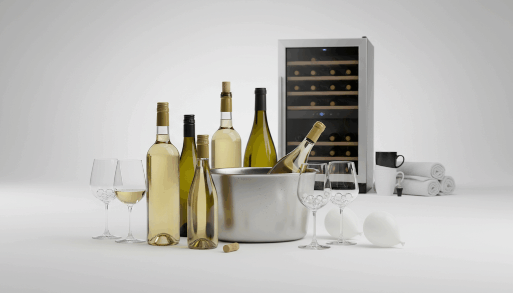 Disse variationer giver forskellige præsentationsmuligheder og praktiske fordele: farvet glas beskytter mod lys, størrelse og vægt påvirker servering og opbevaring. Ud over selve flaskerne finder du tilbehør og opbevaringsløsninger i samme kategori, der gør det nemt at præsentere og nyde hvide vine ved bordet eller til arrangementer.