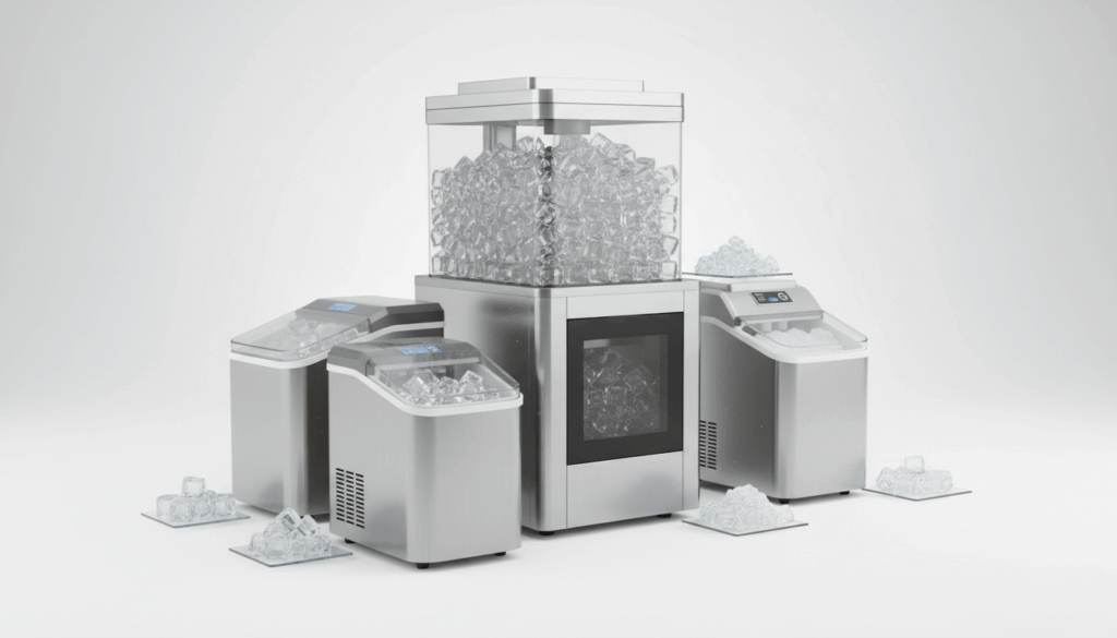Når du vælger, overvej kølemetode, forventet volumen, plads og installation, samt støj og rengøringsvenlighed. Rustfrit stål giver holdbarhed og nem rengøring. Find bordmodeller, under-bord-enheder og store professionelle enheder, der passer til dit behov. Se eksempelvis Maxigastro.dk og Barlife.dk for bredt udvalg.