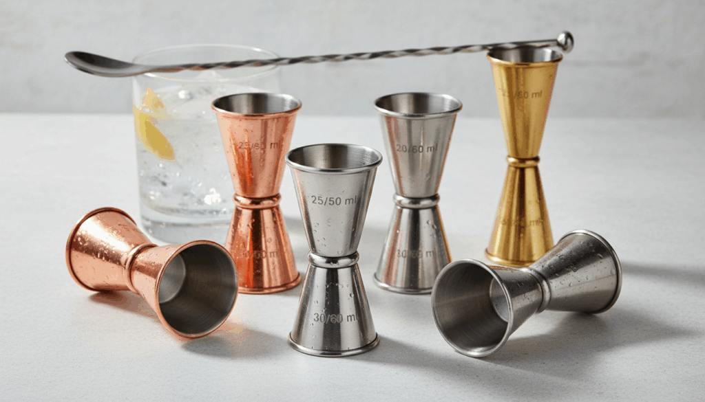 Jiggers (målebægre) er små, men essentielle redskaber i bartenderens værktøjskasse. Denne kategori samler to-sidede målebægre i rustfrit stål og varianter med kobber-, sort- eller guldfinish i typiske måleintervaller som 20/40 ml, 25/50 ml og 30/60 ml. Variationer som jigger med ring eller V-form giver nem håndtering og præcise dosering til cocktails og long drinks. Materiale og finish påvirker holdbarhed og stil, mens tydelige markeringer og ergonomisk design gør det hurtigt at afmåle. Til professionelle og hjemmebarentusiaster er dette kernen i præcision og balance. Nordicbar – alt til baren og Barlife.dk.