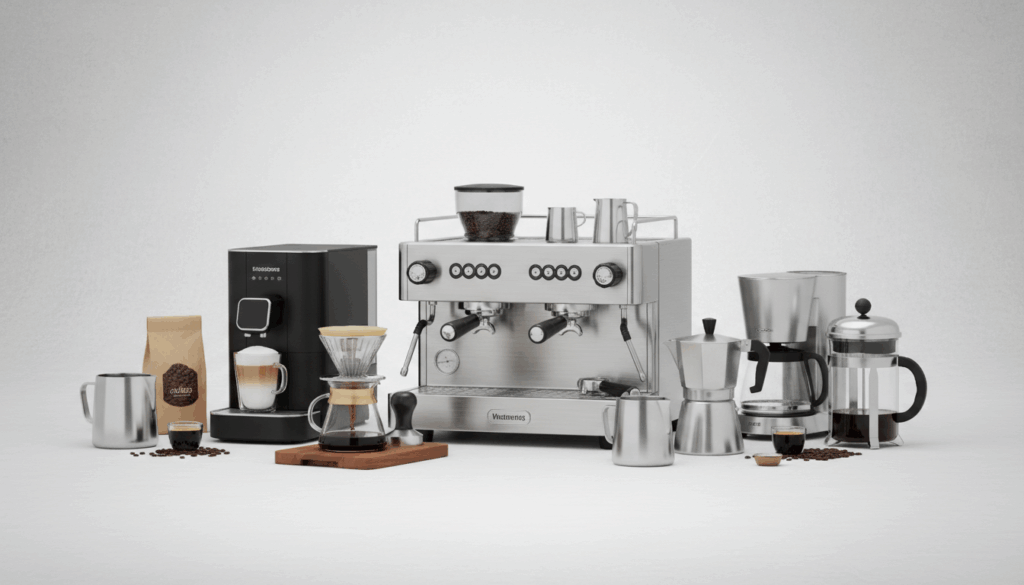 Ud over maskinerne inkluderer sortimentet kværne, tampere, mælkeskummere og pour-over sæt. Holdbar konstruktion i rustfrit stål og nem adgang til dele gør det let at holde maskinerne i drift. Overvej kapacitet, plads til køkkenet eller kontoret, og om du prioriterer hurtig opvarmning eller særligt kontrolleret ekstraktion.