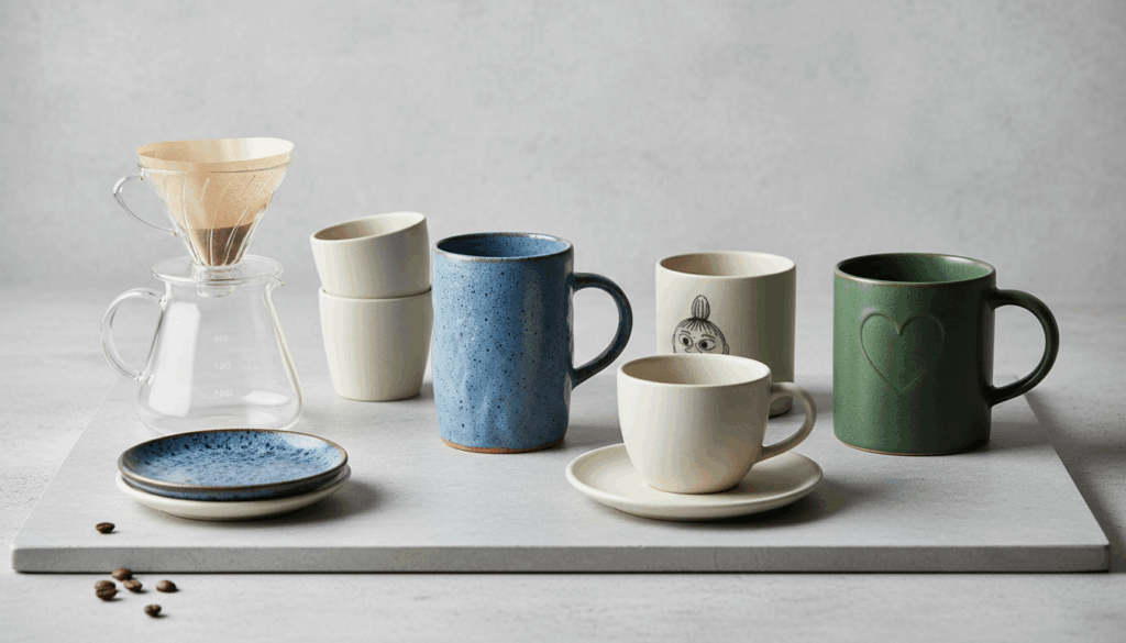 Kopper og krus dækker et bredt udvalg af krus og kopper til daglig brug, hyggestunder og gæster. Du finder keramik-, porcelæns- og stentøjsvarianter i mange størrelser – fra små espressokrus til store krus. Mange designs har hank, andre uden; der er både ensfarvede og mønstrede varianter, og underkopper fuldender ofte borddækningen. Serien spænder fra nordiske, minimalistiske look til farverige motiver og særlige udgaver som Mumin og RAW-kopper, der giver bordet karakter.