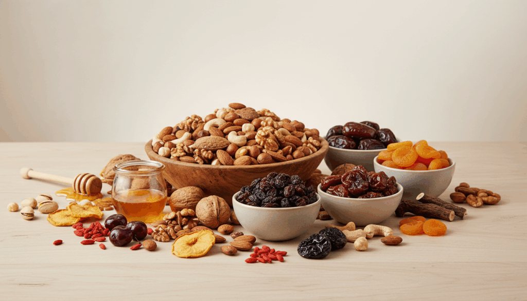 Nødder og tørret frugt dækker en bred kategori af snacks og råvarer, der spænder fra hele nøddetyper til søde, tørrede frugter. Her finder du mandler, valnødder, hasselnødder og cashewnødder i varianter som rå, ristede, saltede eller usaltede samt økologiske valg. Blandt tørrede frugter finder du rosiner, dadler, abrikoser og gojibær samt specialiteter som Amarena-kirsebær og lakridsdadler. Produkterne passer som snack, i müsli og salater, i bagværk eller som desserttopning. Ved køb: vælg friskhed, opbevar køligt og mørkt, og vær opmærksom på tilsætningsstoffer og glutenfri muligheder. Se udvalg hos Barlife.dk og Løvegården.