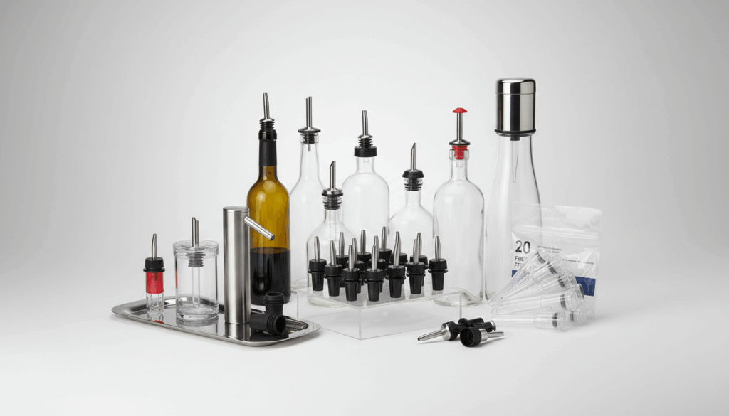 Når du vælger, bør du overveje pasform til flasketype, materiale (rustfrit stål, ABS eller gennemsigtig plast), rengøring og antal i pakken (1-pak, 12-pak eller 20-pak). Udvalget kommer i forskellige farver og gennemsigtighed, så du nemt kan styre flow og indhold.