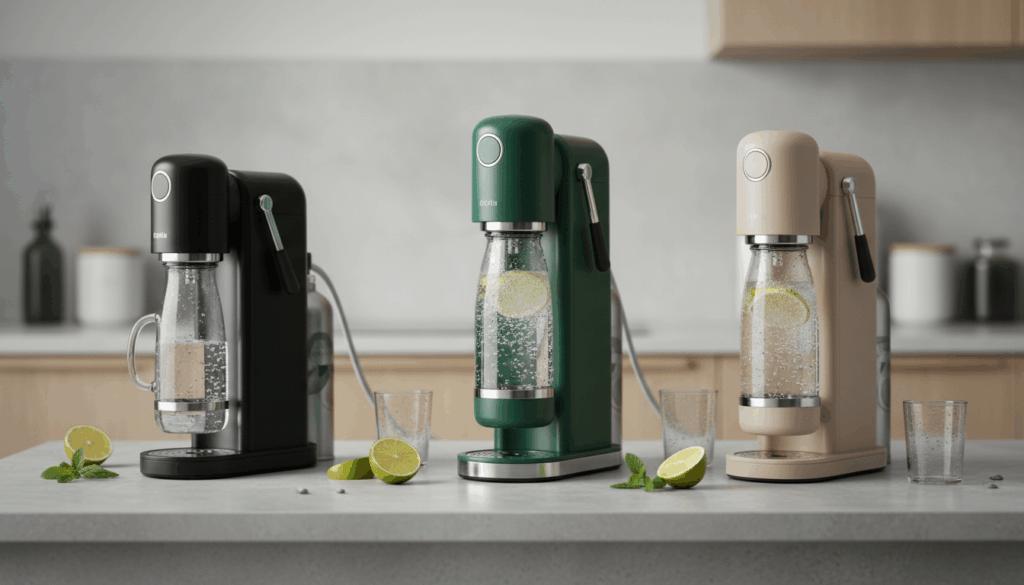 Sodavands- og kulsyremaskiner dækker hjemmeenheder, der karboniserer vand og giver frisk sodavand i få minutter. Kategorien omfatter kompakte bordmodeller, stilrene designer-enheder og robuste maskiner med genanvendelige flasker og integrerede tanke. Typiske funktioner er justerbar kulsyre og valgfri manuel eller elektrisk betjening, let genopfyldning og rengøring samt pladsbesparende design. Ved køb bør du overveje kapacitet, hvor mange der skal bruge den, om du vil have automatisk eller manuel kulsyre og hvordan design og materialer passer til køkkenet. Variationer inkluderer manuelle, elektroniske og kombinationsmodeller. KitchenOne.