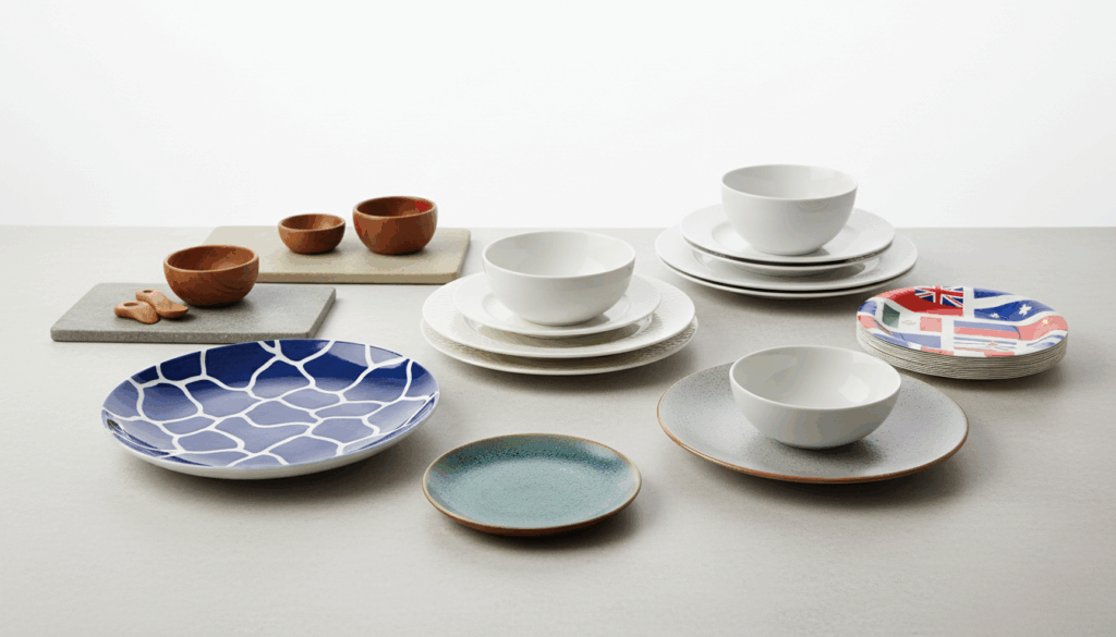 Når du vælger tallerkener, overvej størrelse og form: typisk 17–30 cm i diameter og rund, rektangulær eller coupe. Materiale påvirker holdbarhed og brug; porcelæn og stentøj har forskellige krav til ovn og opvaskemaskine. Vælg farver og mønstre, der passer til dit stel eller skaber kontrast. Se udvalget hos Maxigastro.dk og Barlife.dk for inspiration og kvalitetsvalg.